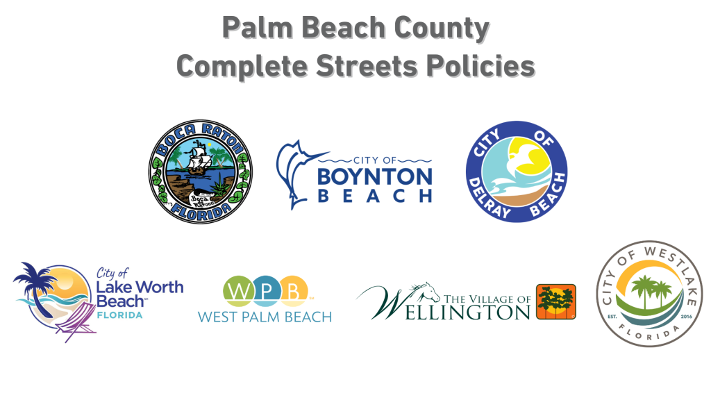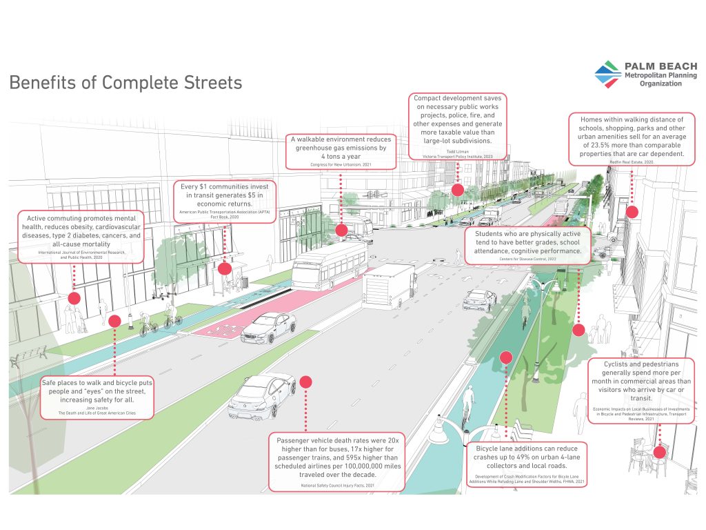 The Palm Beach MPO is committed to creating a safe, efficient, and connected multimodal transportation system. Advancing Complete Streets supports this vision by promoting context-sensitive roadway designs that safely and comfortably accommodate all users, including pedestrians, bicyclists, transit riders, motorists, and people of all ages and abilities.